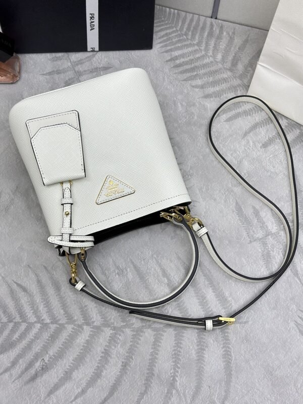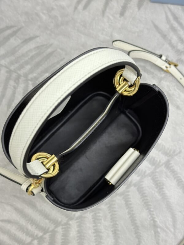 This Prada Prada Saffiano Black Bucket White in Saffiano is built to mirror designer dimensions, stitching density and hardware tone for everyday wear. It blends recognizable design codes with practical storage to suit commute, city errands and travel.